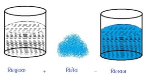 विलायक: विलयन का वह घटक जो विलयन में सबसे अधिक मात्रा में होता है और यह दुसरे घटकों को को विलयन में मिलाता है, विलायक कहलाता है | जैसे : जल, अल्कोहल, तारपीन तेल आदि विलायक होते है |
